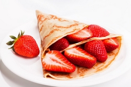 Блин «Тропический» (ананасы консервированные, бананы, персики консервированные, кленовый сироп) |