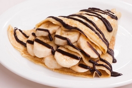 Блин с бананами и шоколадом (бананы, шоколад, мед, кондитерская посыпка) |