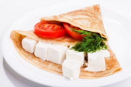 Блин с брынзой и овощами (брынза, огурцы, помидоры, лук, чеснок) |