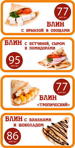 Блин «Мексиканский» (куриное мясо, фасоль красная консервированная, помидоры, томатная паста, острый перец) Блин с семгой (семга слабосоленая, сливочный соус для рыбы, яйцо куриное, укроп) |